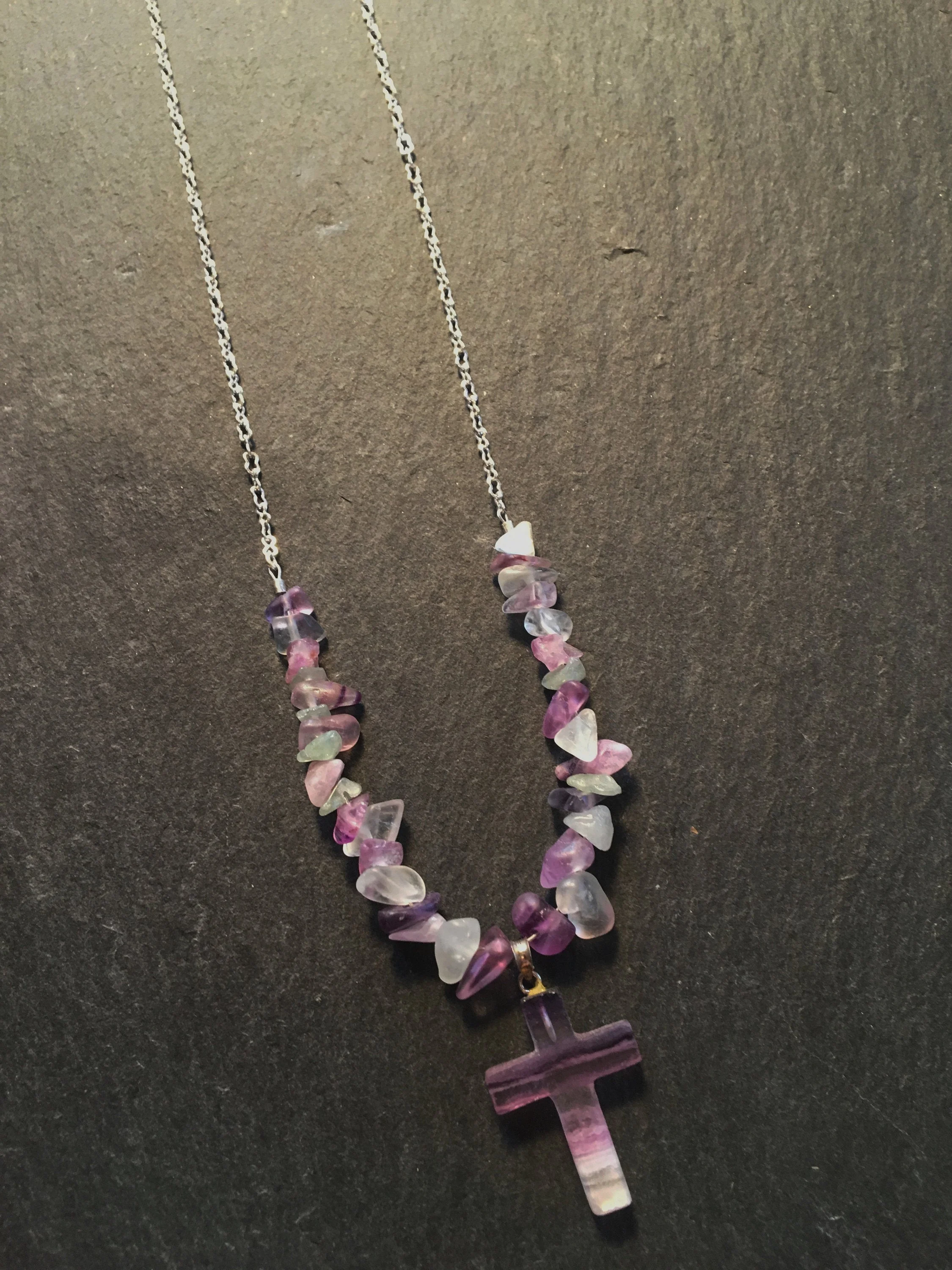 Imported Products Fluorite Cross Necklace PreviousLabradorite Bar Necklace NextMagic in the Depths Necklace Fluorite Cross Necklace Fluorite Cross Necklace $24.00 This necklace is made with silver chain and a fluorite cross pendant is flanked by 2.5 inches of fluorite gemstone beads. Necklace is 21 inches long.Gemstone Properties:Fluorite Add To Cart Facebook0 Twitter Tumblr