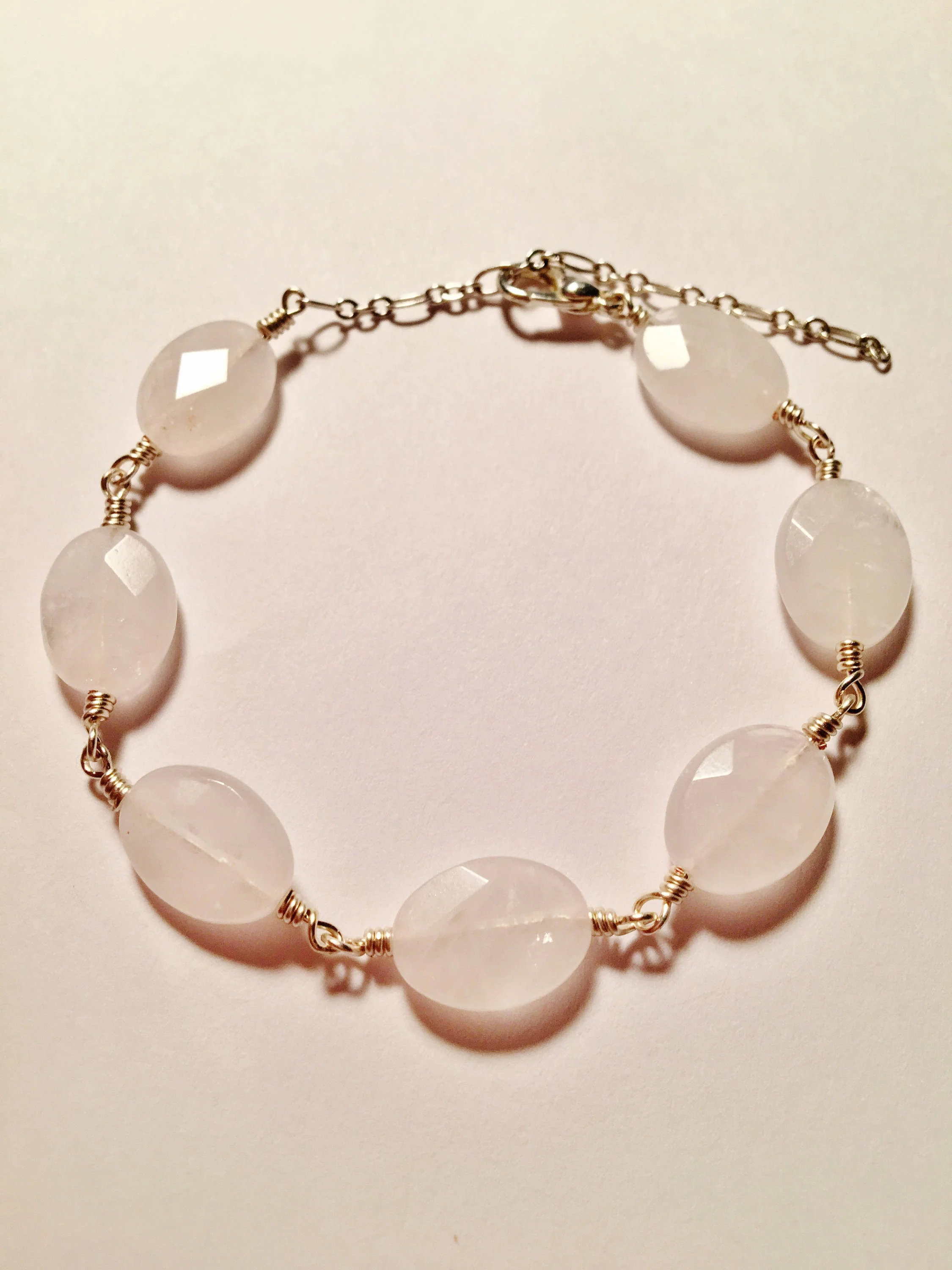 This Rose Quartz bracelet is finished with a lobster clasp and has a small chain at the end to adjust the size as needed. Bracelet is 8 inches long with chain. If you would like a longer or shorter length, I can custom make one for you; just let me know!